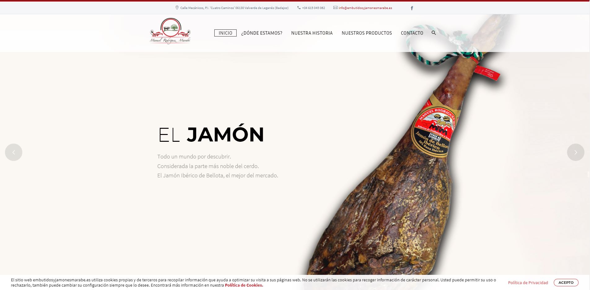 En nuestra página web encontrarás toda la información sobre Fábrica de Embutidos y Jamones Marabé, nuestra historia, dónde nos encontramos, o cómo contactar con nosotros (a través del los teléfonos o el correo electrónico) y realizar pedidos.